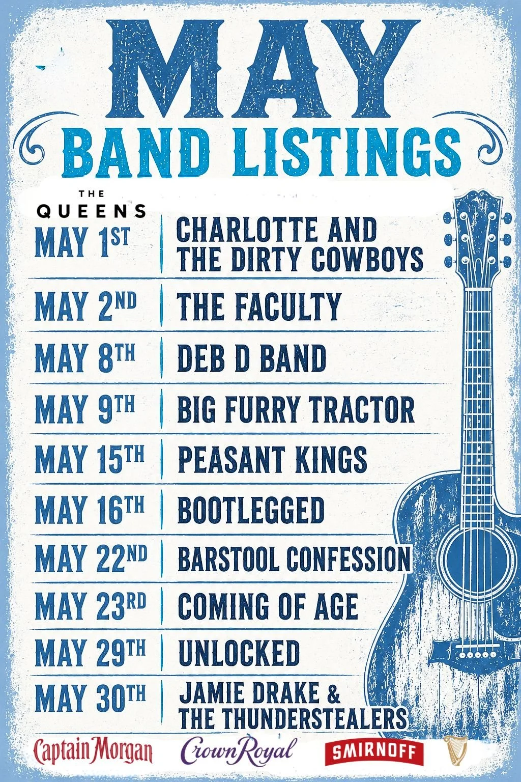 QUEENS LIVE ORIGINAL MUSIC - SUN/WED/THURS COMING FRI & SAT WINTER 2025. *MUST CHECK CALENDAR