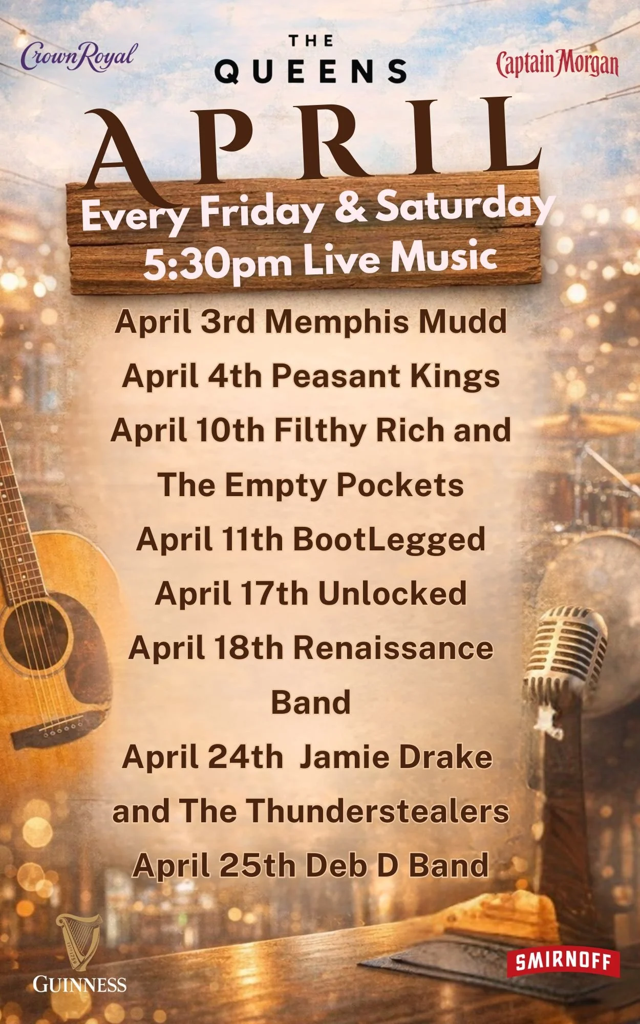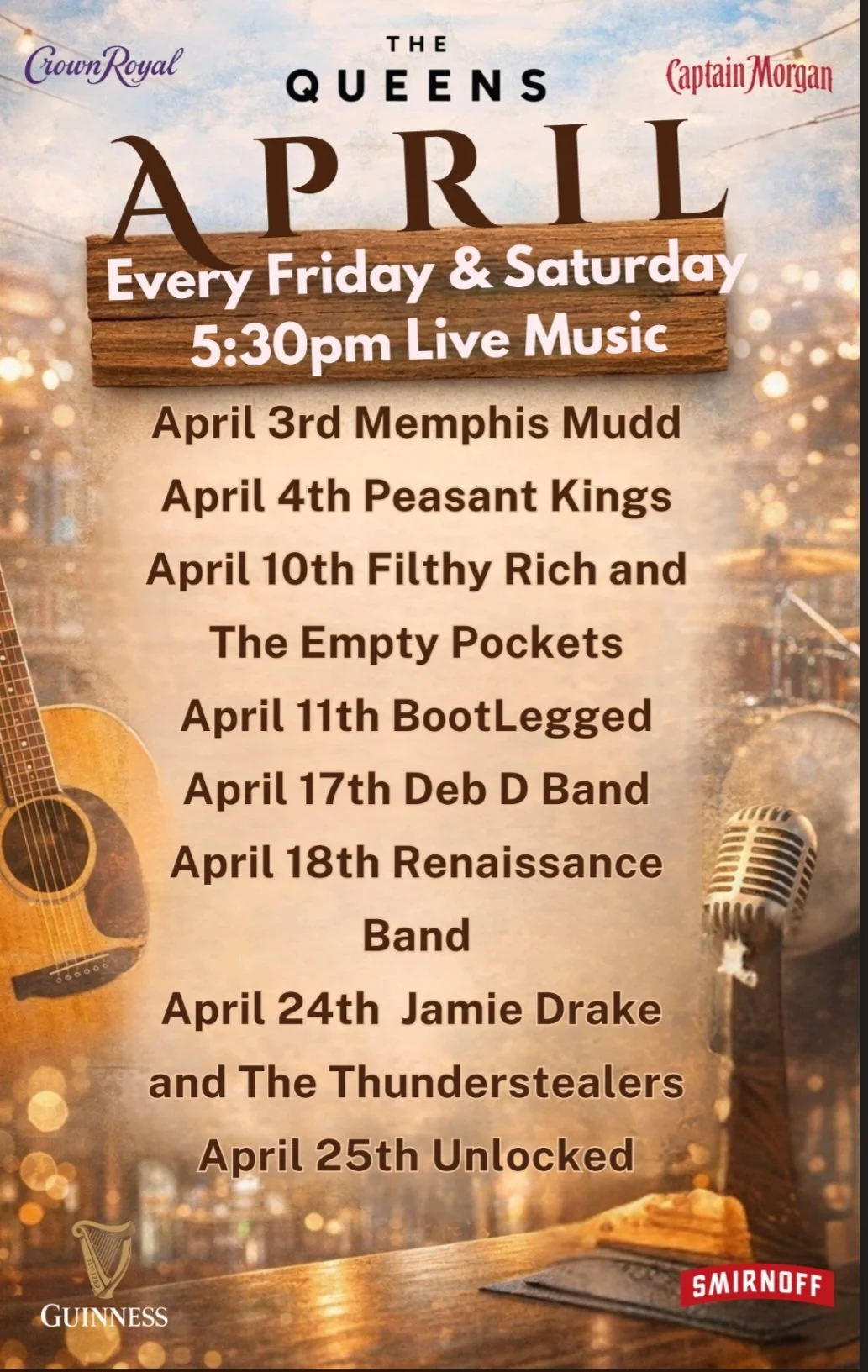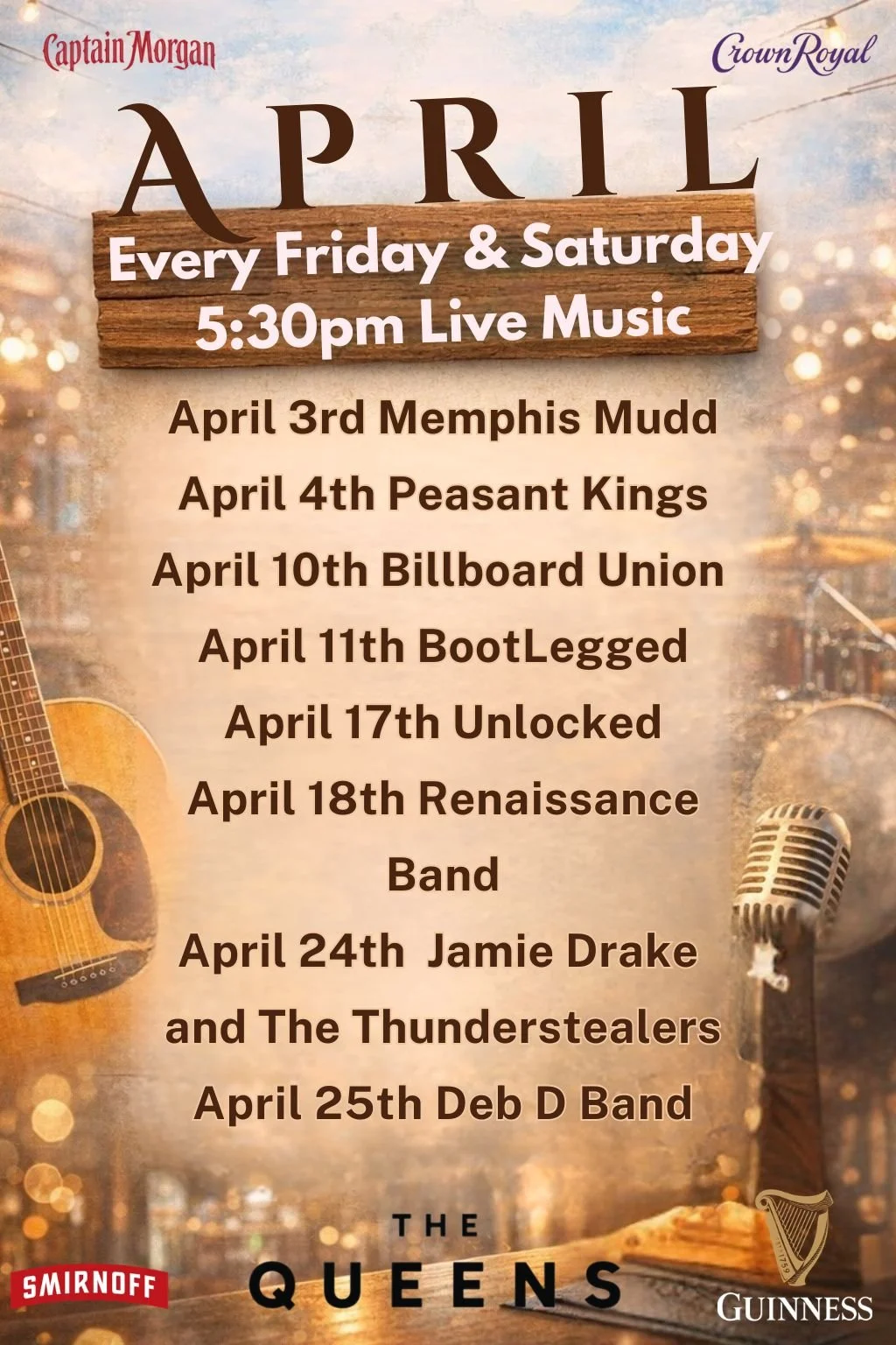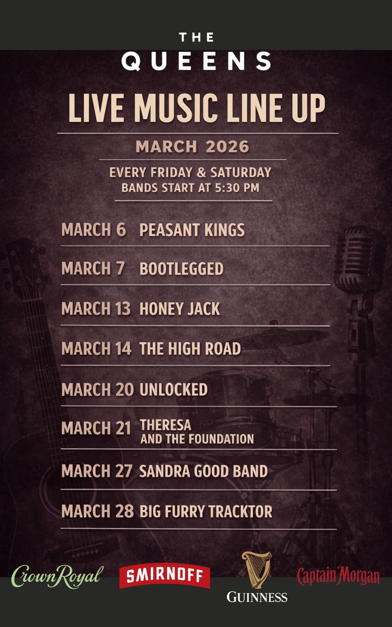 QUEENS LIVE ORIGINAL MUSIC - SUN/WED/THURS COMING FRI & SAT WINTER 2025. *MUST CHECK CALENDAR